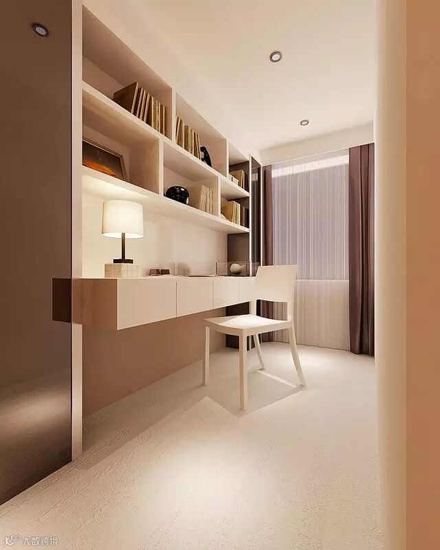 利用高、瘦且直达天花板的书架,让你的目光不自主向上延伸并产生高度的错觉。