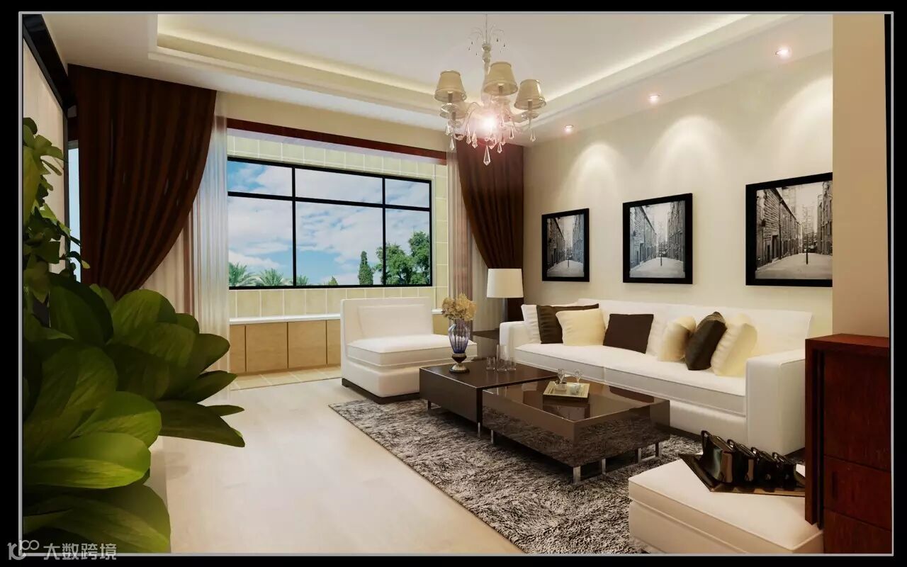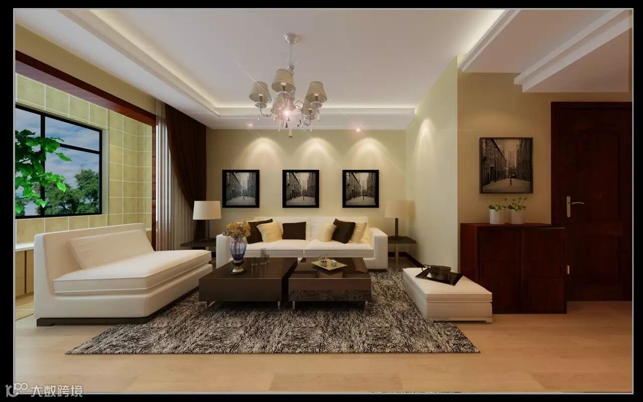 客厅:色彩更明亮,以白色为主,无论是灯,隔断,沙发,背景墙,设计都很漂亮!