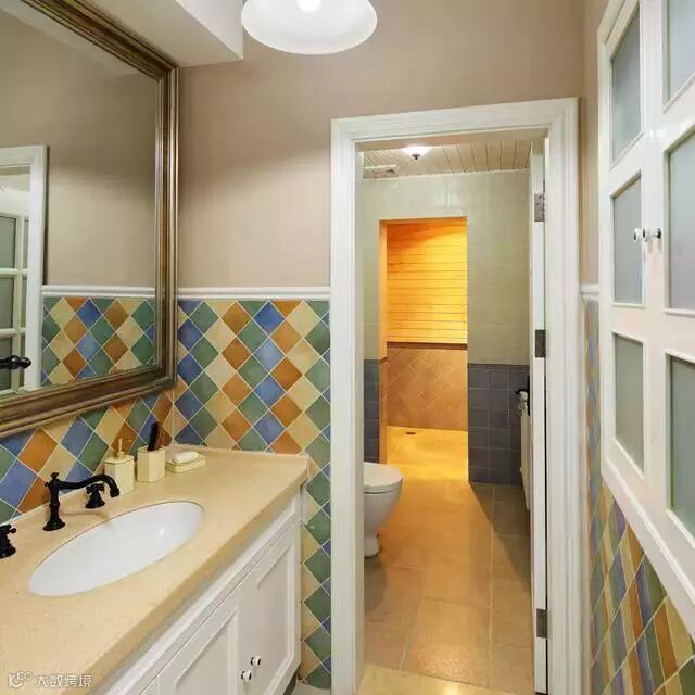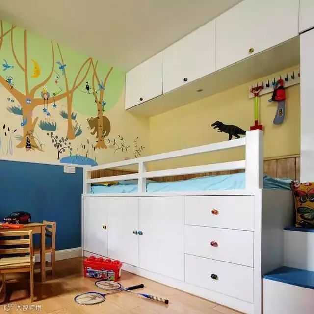 设计中运用了一些大胆的元素,譬如那蓝色艳丽的墙面,譬如那夸张的公主床,譬如客厅中那个有通体马赛克拼出来的圆。因为我坚信:过于繁琐的细节处理,会让人不放松;过于平淡的一带而过,会让人觉得不耐看。