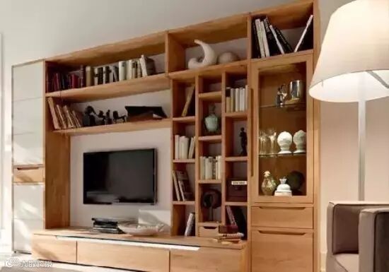为了增加收纳空间,业主可以用储物柜来代替电视墙,这样既增加了收纳空间,又能节省了装修电视背景墙的钱,非常实用。▼
