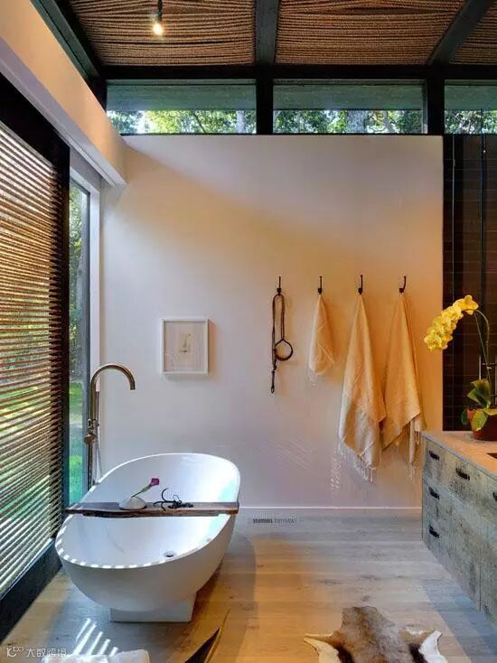 仿佛待在热带雨林一样的风格设计,连沐浴都有了禅意。放好温水,撒下玫瑰花瓣,世间美好莫过于放松泡个澡。