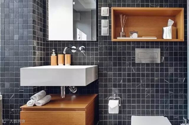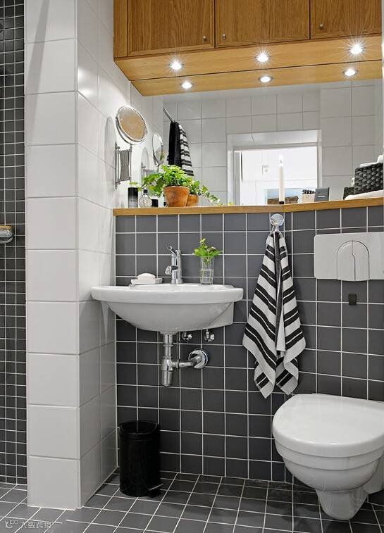 简洁的黑白搭配会让卫生间显得明亮许多。