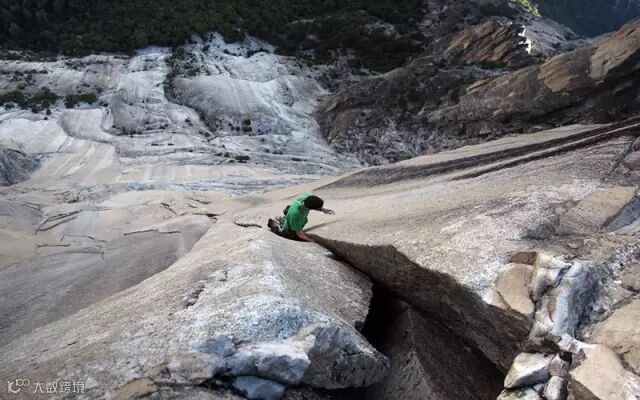 这三块岩壁加起来一共有7000英尺高, Honnold“无辅助、无保护、单人徒手”攀爬总共用时18小时50分钟。