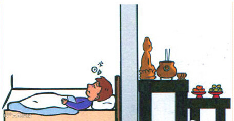 只有小庙的庙公才会睡在神像的后面或神桌下面。一般人即不是庙公,也不是灵媒,千万不可如此睡。