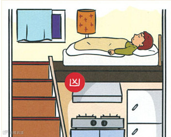 睡觉的位置上或下是厕所,有多恶心不用解释也想得到,只是一般人只想到自家空间如何充分利用,忽略了楼上、下的关系。如果睡床上或下是厨房炉灶,会让人肝火过旺,影响肝功能。
