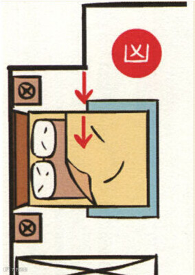 房门对到床,会因对到身体不同的部位,造成对应部位的功能性病变。房门与窗户是室内空气对流的进出口,睡眠状态时风会直接吹到身体,受到风寒的部位会造成病变。为考虑室内空气对流,一般的房门下缘都会留有细缝,所以就算是紧关着门,只要打开空调或窗户开一小缝,都能使室外空气进出。
