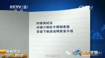 除此之外,还有一个小妙招可以识别不锈钢制品是否合格。首先准备一只柠檬,将柠檬汁倒在不锈钢制品的表面。10几分钟后,擦干柠檬汁,如果在不锈钢制品的表面留下明显的痕迹,就说明不锈钢制品质量不佳,容易被腐蚀,从而释放出铬危害人体健康。