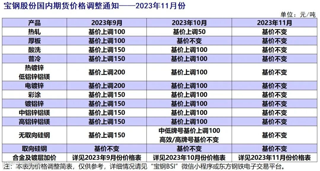 宝钢股份2023年11月价格发布