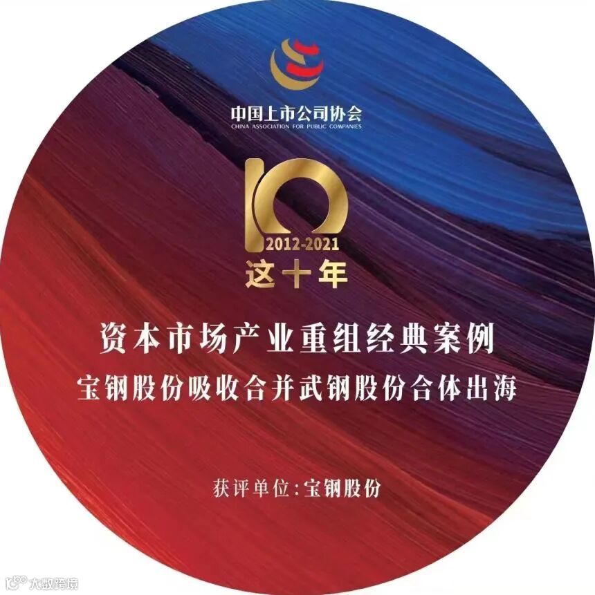 经综合评审,宝钢股份吸收合并武钢股份合体出海案例获评资本市场产业重组经典案例。