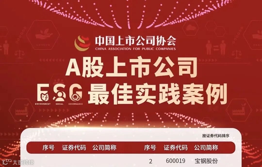 宝钢股份入选中上协2022年A股上市公司ESG最佳实践案例。