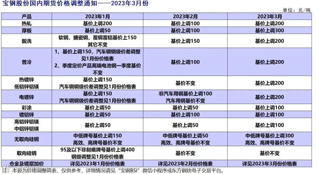 宝钢股份2023年3月价格发布