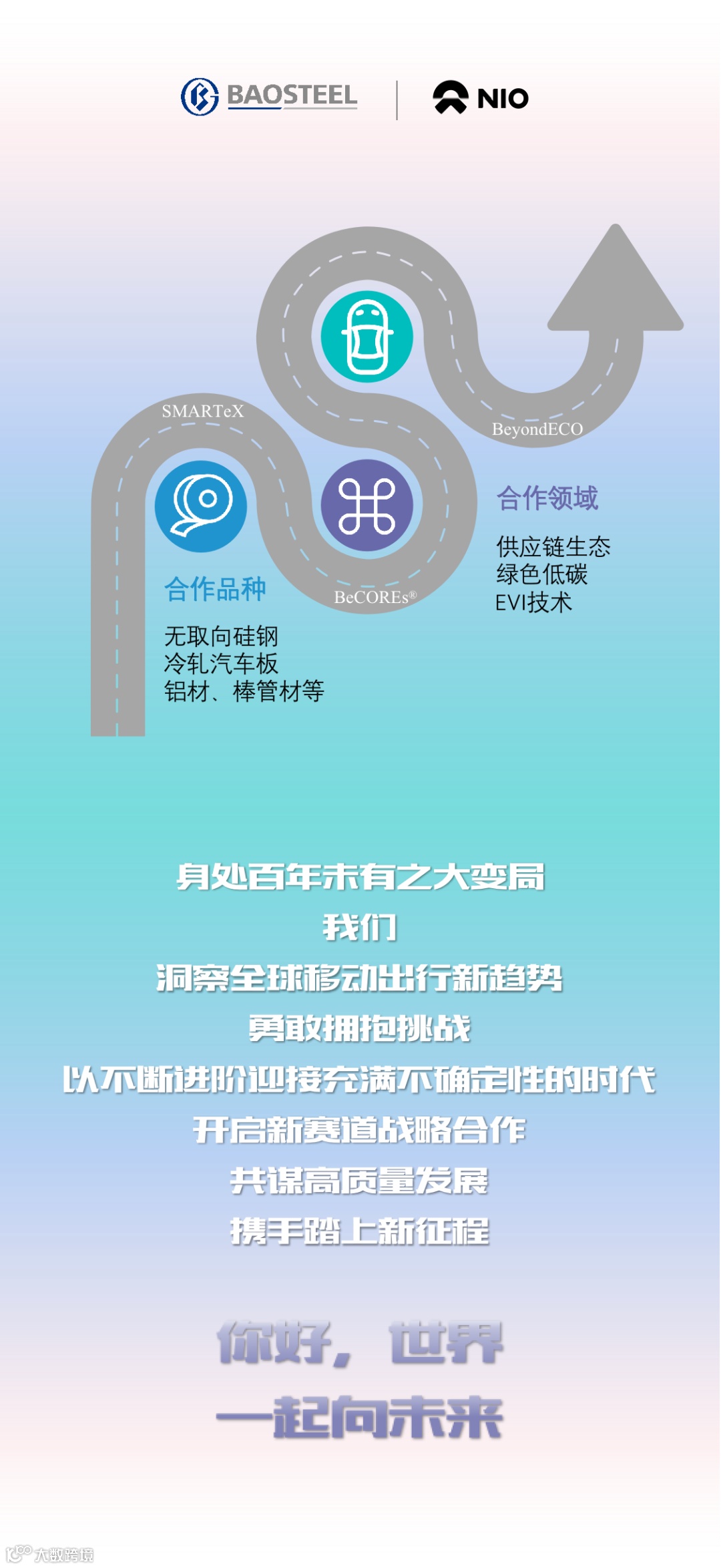 感谢蔚来给予宝钢的支持和信任。两个企业都是在全球叫得响的品牌,品牌互相加持,形成合力。