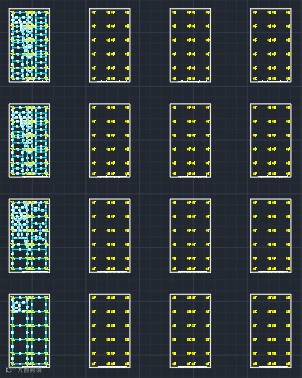 该项目为多层框架结构,含1层地下室,抗震设防烈度为8度(0.20g)。隔震支座采用铅芯橡胶支座LRB800,隔震支座布置及参数设置如下图所示。