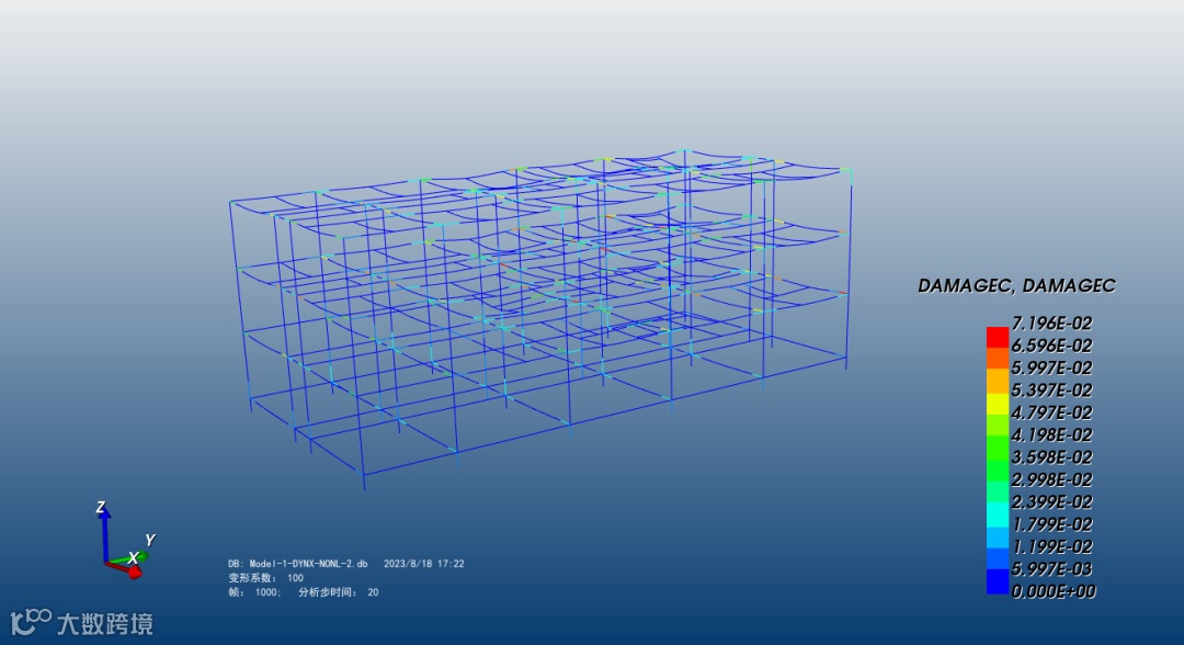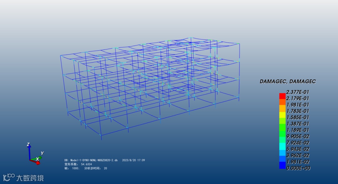 罕遇地震下结构梁柱损伤结果如下图所示。