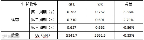 由于两种软件计算假定存在差别,GFE按照弹性楼板计算,不考虑框架梁刚度放大和连梁刚度折减等因素影响,导致GFE模型各节阶阵型与YJK计算结果存在一定差异。除此之外,GFE和YJK模型质量差异均较小,说明GFE模型与YJK模型具有一致性,动力时程分析模型可靠。GFE与YJK计算的结构自振周期、质量结果对比如表2所示。