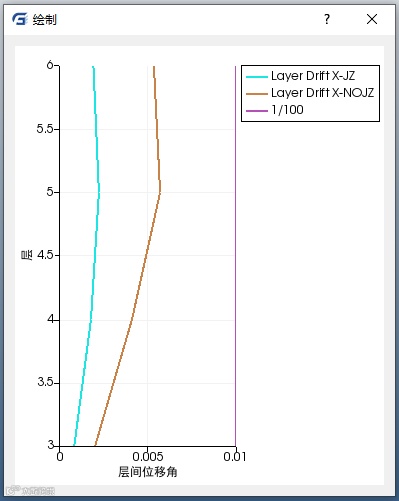 本项目隔震后大震弹塑性层间位移角均满足《建筑隔震设计标准》4.5.1条规定的1/100的限制要求。层间位移角结果如下图所示,最大层间位移角对比如表5所示。