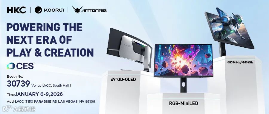 本届CES,惠科股份将通过HKC、KOORUI 与 ANTGAMER三大核心品牌,带来覆盖多元应用场景与性能层级的前沿显示产品。