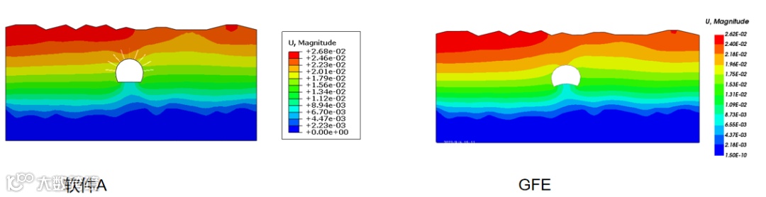 3、通过与软件A的计算结果对比,发现GFE非均匀土体结果精确,满足工程精度要求。