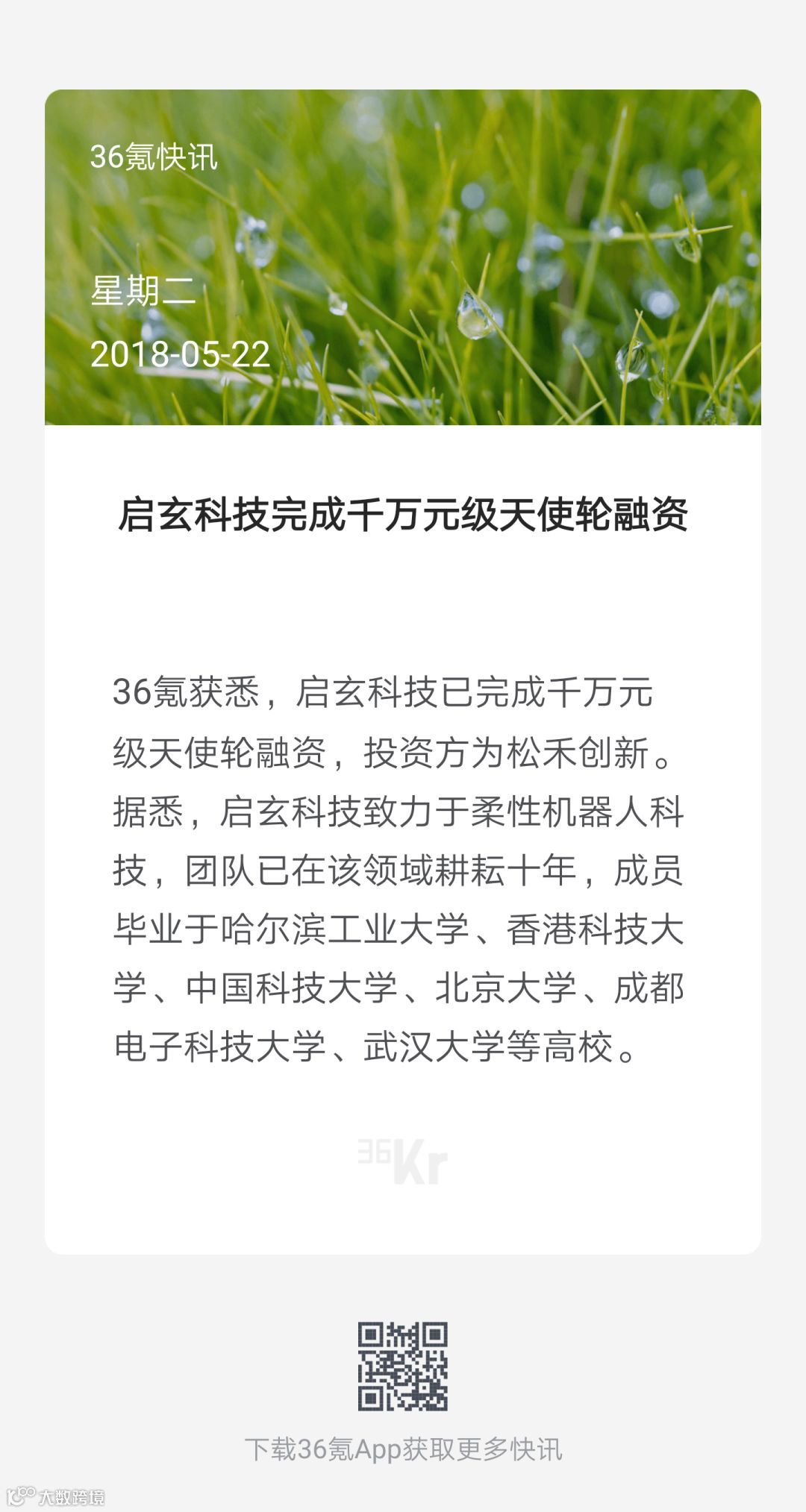导读:36氪快讯:启玄科技已完成千万元级天使轮融资,投资方为松禾创新。