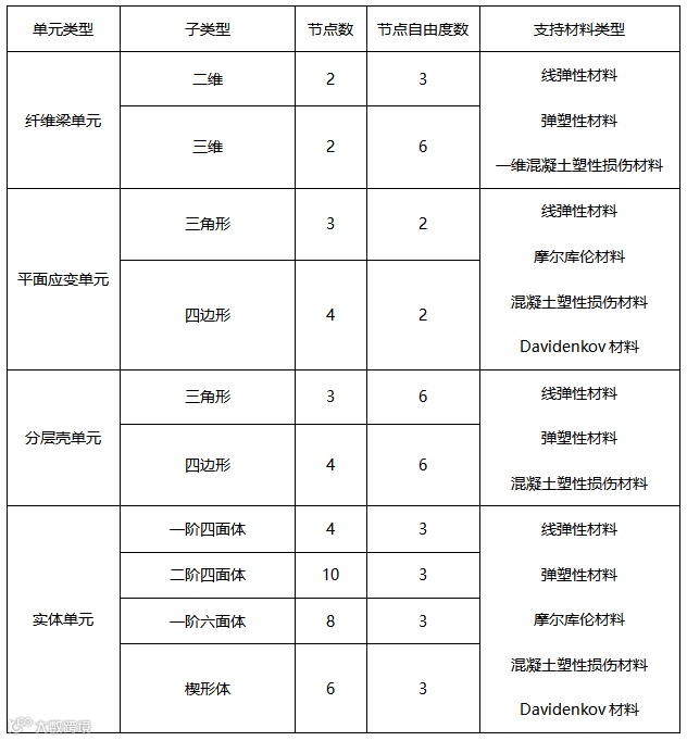 表1 GFE软件中的有限单元