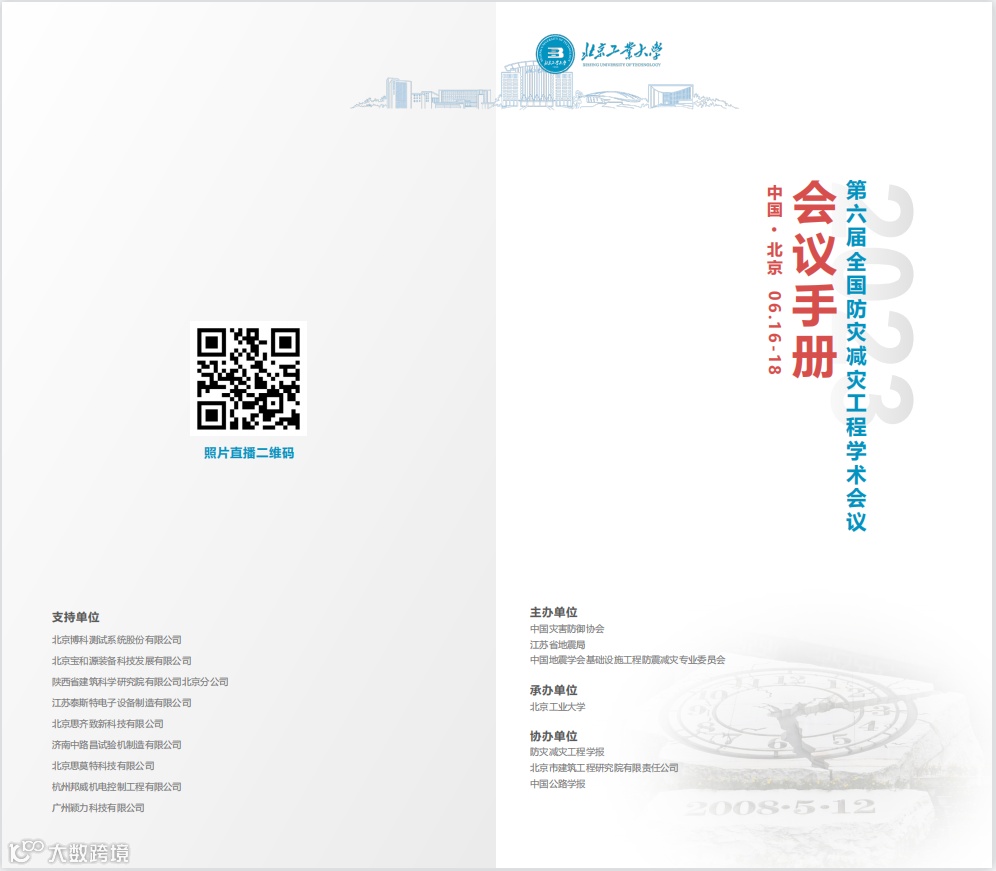 为积极响应第15个全国防灾减灾日号召,以切实行动纪念汶川大地震15周年,充分交流我国在灾害防治领域的最新研究成果,将于2023年6月在首都北京召开“第六届全国防灾减灾工程学术会议”。本次会议由中国灾害防御协会、江苏省地震局、中国地震学会基础设施防震减灾专业委员会、《防灾减灾工程学报》编辑部共同主办,北京工业大学承办,以“提高灾害防治能力,构筑生命安全防线”为主题,旨在为广大致力于相关科学和技术的专家、学者及研究生提供更多的学习交流平台。