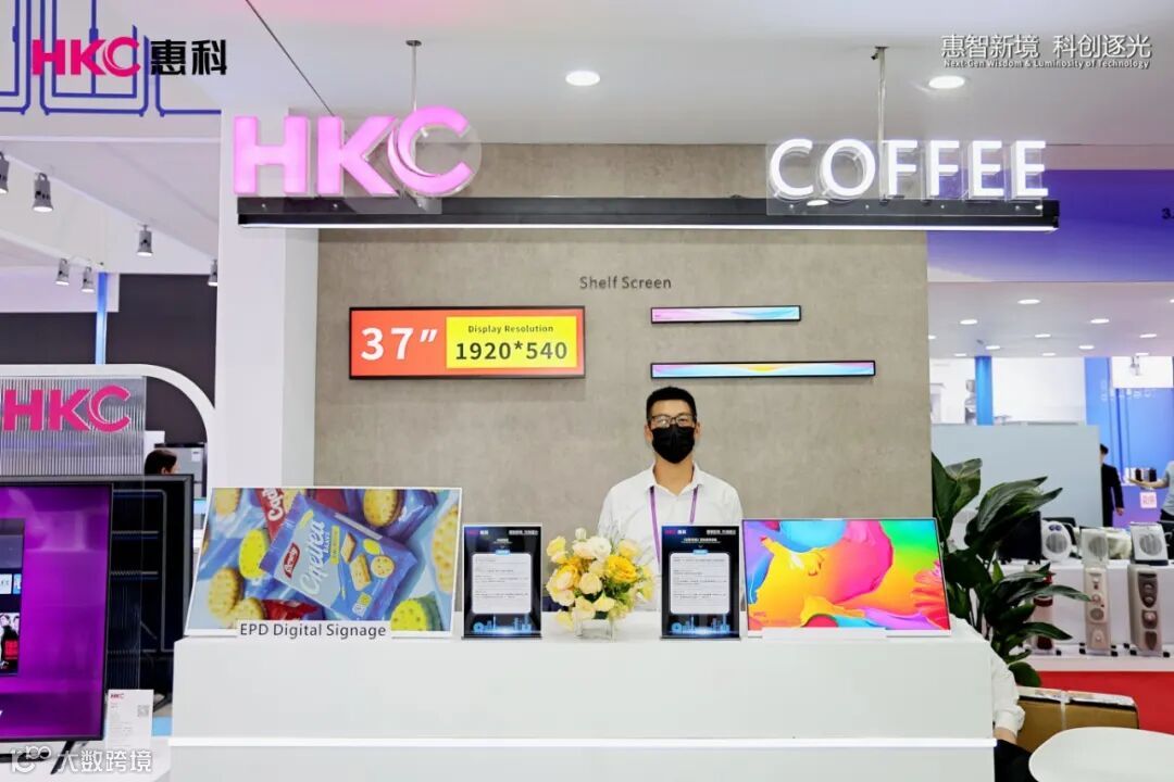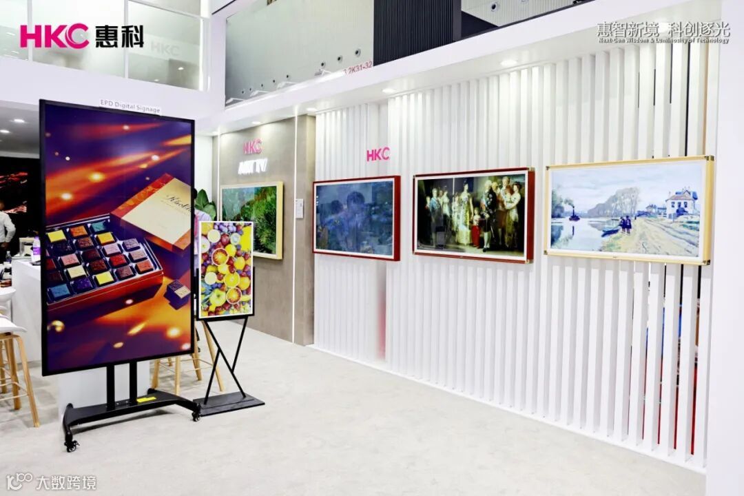 除此之外,此次广交会还展示了其他产品,包括搭载 Google、ROKU 等系统的 TV、电子价签、钙钛矿户外广告显示牌、数字标牌等一系列丰富多样的产品,充分彰显了 HKC 惠科在显示领域的强大实力与广泛布局。