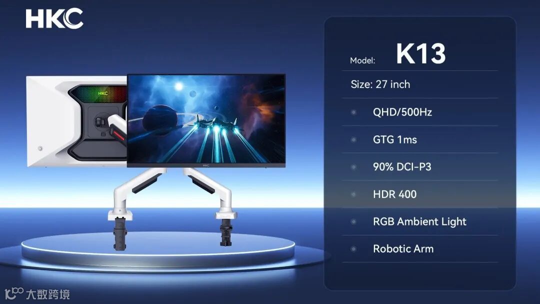 在显示器刷新率越来越“卷”的当下,HKC也推出了刷新率高达500Hz的新品K13。该款显示器的外观采用现代科技的太空风格设计,配备HKC科技风的显示器机械臂,无论是颜值还是实用性都双双拉满。