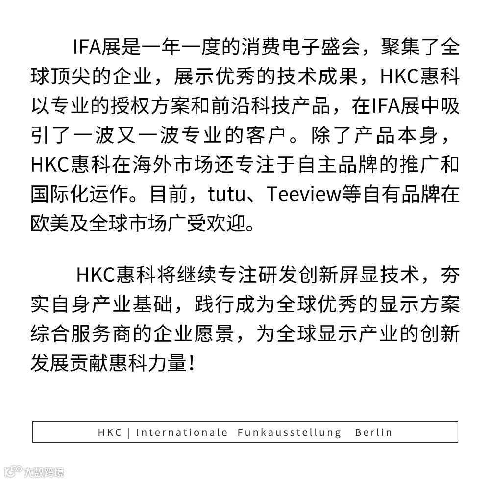 直击IFA 2023 | HKC惠科携多种授权系统和显示技术解决方案亮相电子展