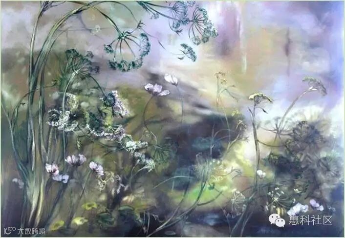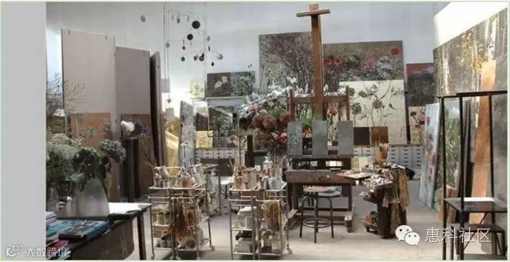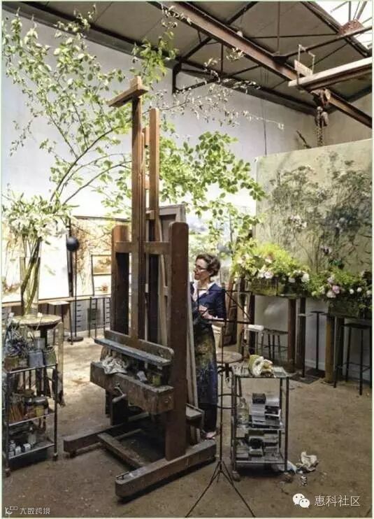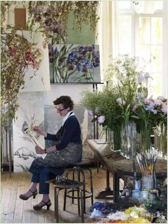她不仅把花草植物画在油画布上,还画在墙壁上、画在瓷器上,爱花人以花为邻。她的工作室、卧室、藏书室都好像植物园。她的灵感全部来自与大自然的直接接触:一棵树的力量、一朵花的柔弱、树林内遮蔽的空间以及暸阔草原的震撼。