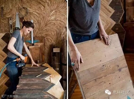 ArieleAlasko,她是一位女木匠,也是一位家居设计师。她擅长用年代已久的老建筑废弃的木材,重新切割后再组装成几何图形的家具。每样木工艺品都是她独自亲手完成,亲切又温暖的仿旧感,让人如同置身在从前的回忆里。