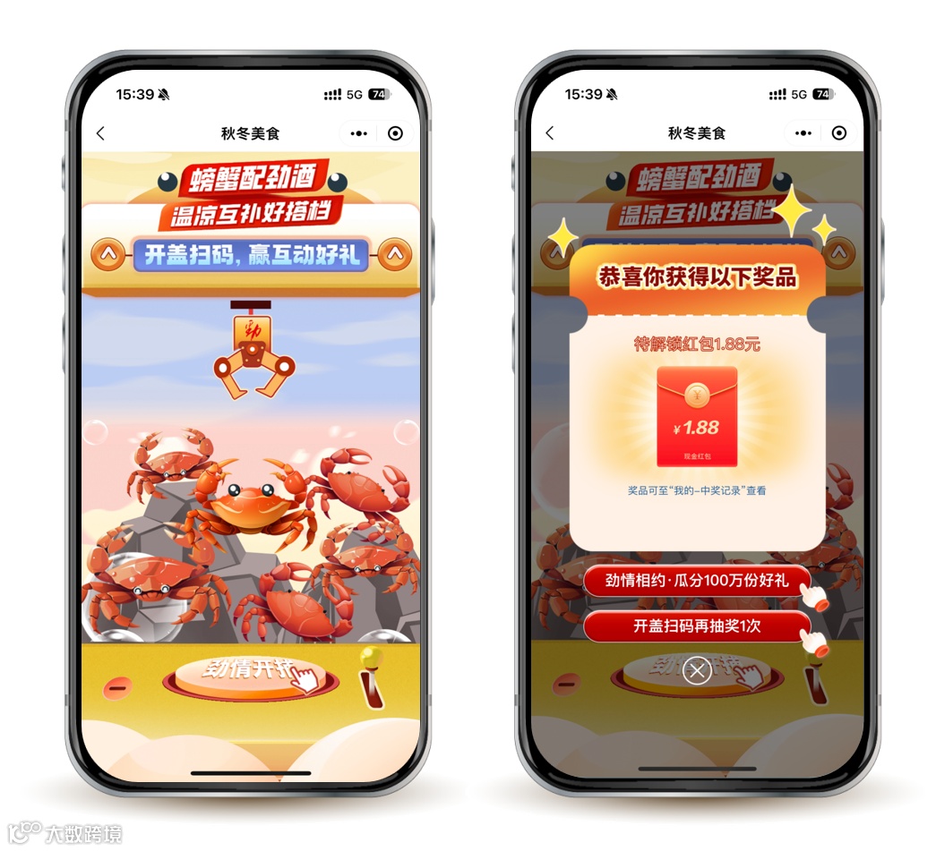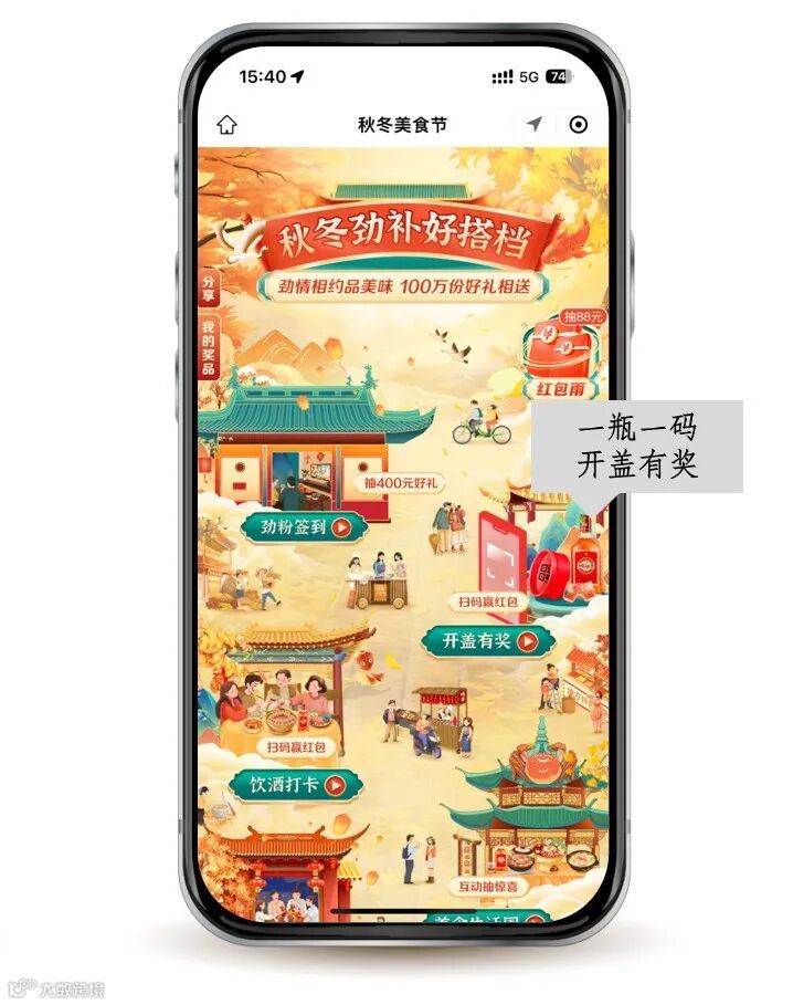 中国劲酒秋冬美食节活动已经开展多年,每次都能引爆全国。今年活动聚焦秋冬的海鲜、火锅及羊肉等劲补美食,线上新媒体平台话题互动,视频传播造势,线下全国各地美食活动同步开展,更有开盖扫码活动,赢秋冬劲补互动好礼。CCN中商便为中国劲酒开盖扫码营销活动提供数字化营销系统服务支持。