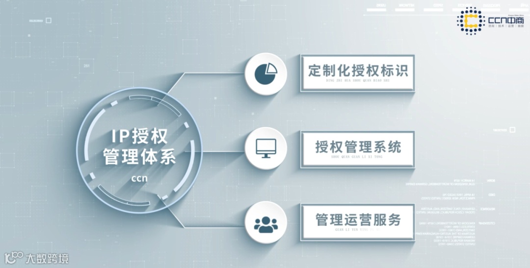 结合国内外领先行业IP授权场景,CCN中商构建了符合一物一码特色的IP授权数字化管理体系,为IP授权商提供定制化授权标识、IP授权管理系统及IP授权管理运营服务,以此打通IP企业-授权商-供应链-销售商-消费者全环节,为授权商提供从订单、结算、物流、售后等一体化授权服务模式,实现标签流向稽查、授权商品流向追溯、授权角色追溯、授权商品市场洞察等功能。