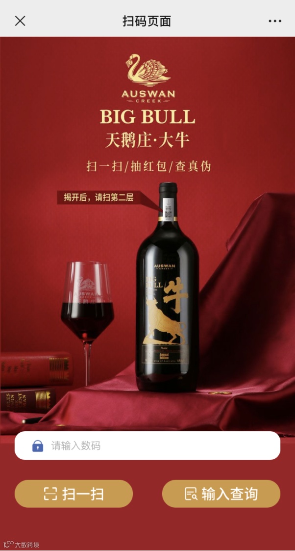 为了刺激消费完成交易以及提高线下的互动性,CCN中商为天鹅庄生肖酒赋上“防伪营销码”,在瓶身实现了一瓶一码的智能营销活动。在消费者查询酒款真伪后,还能参与抽奖活动,达到低成本活跃用户、促进复购的目标。
