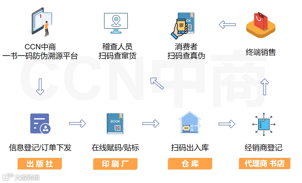 CCN中商一书一码防伪追溯管理体系基于一物一码技术,为每一本教材赋予唯一的“电子身份证”。
