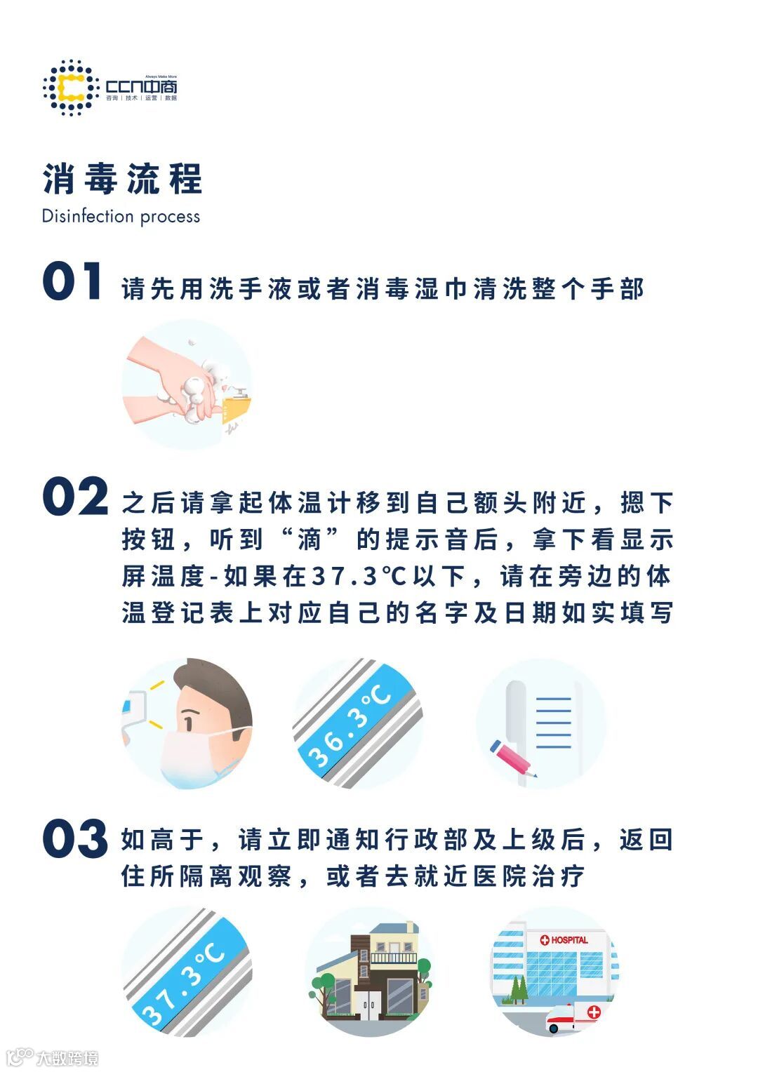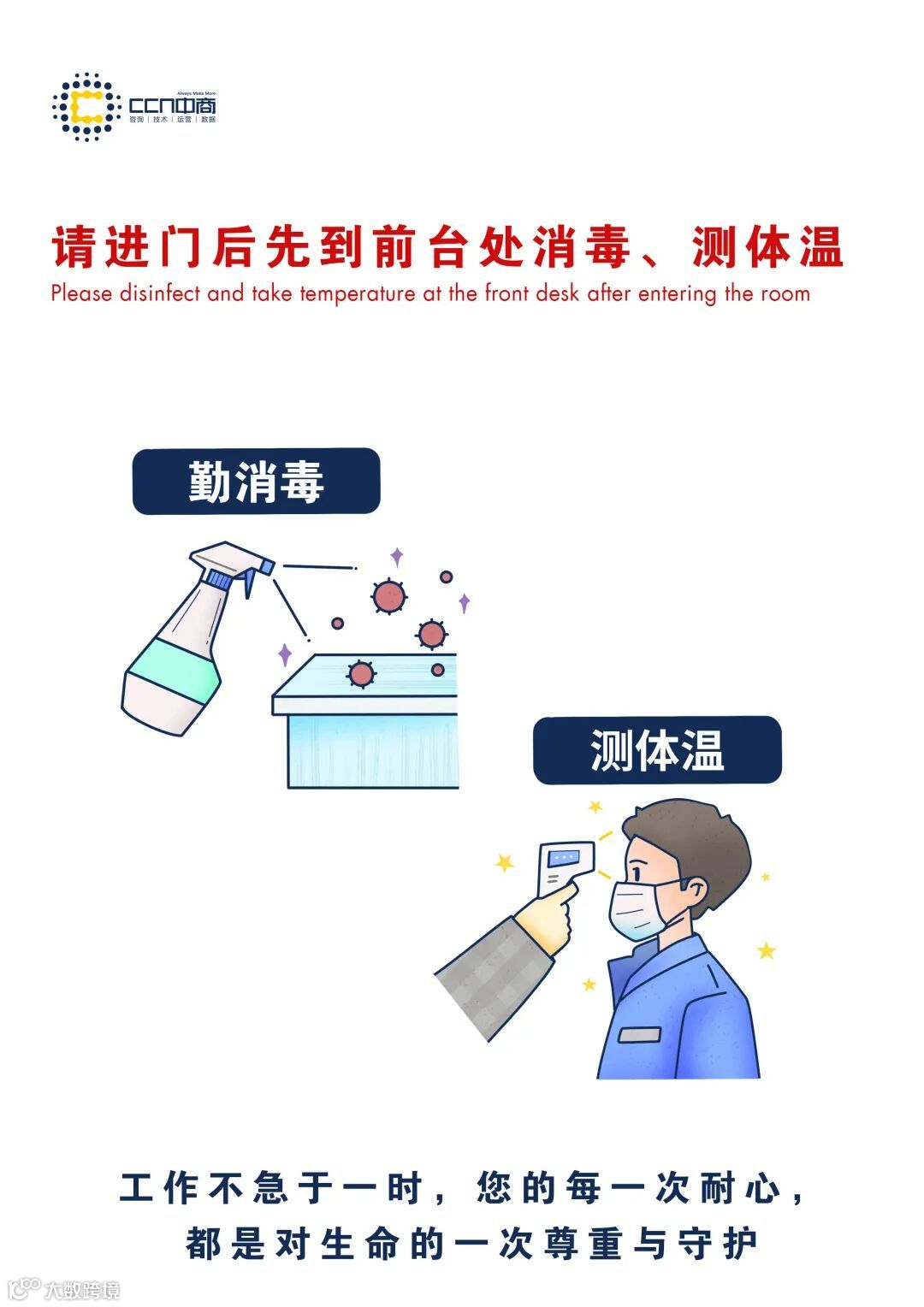 目前,CCN中商各子公司、各部门积极协同,保障复工复产有序进行,安全督查工作有条不紊,防疫物资储存充足,消毒方案面面俱到,真正做到了科学应对,有序复工。