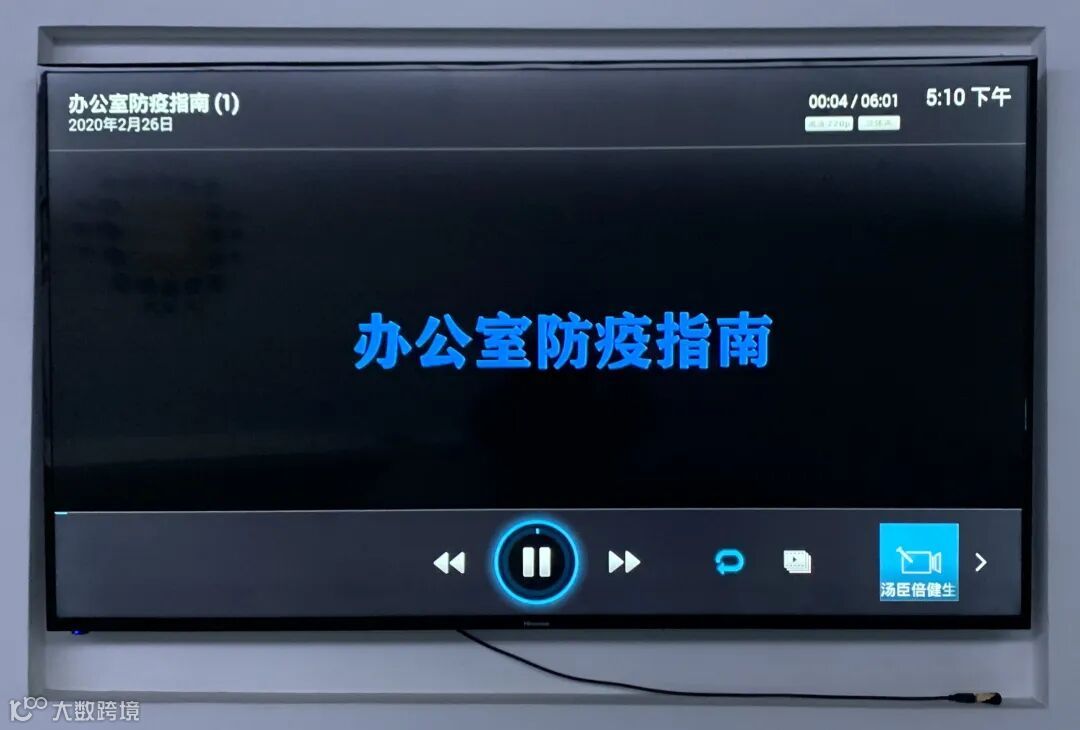 疫情宣传无死角,大屏循环播放公司防疫指导手册,张贴多样的防疫贴士时刻提醒员工