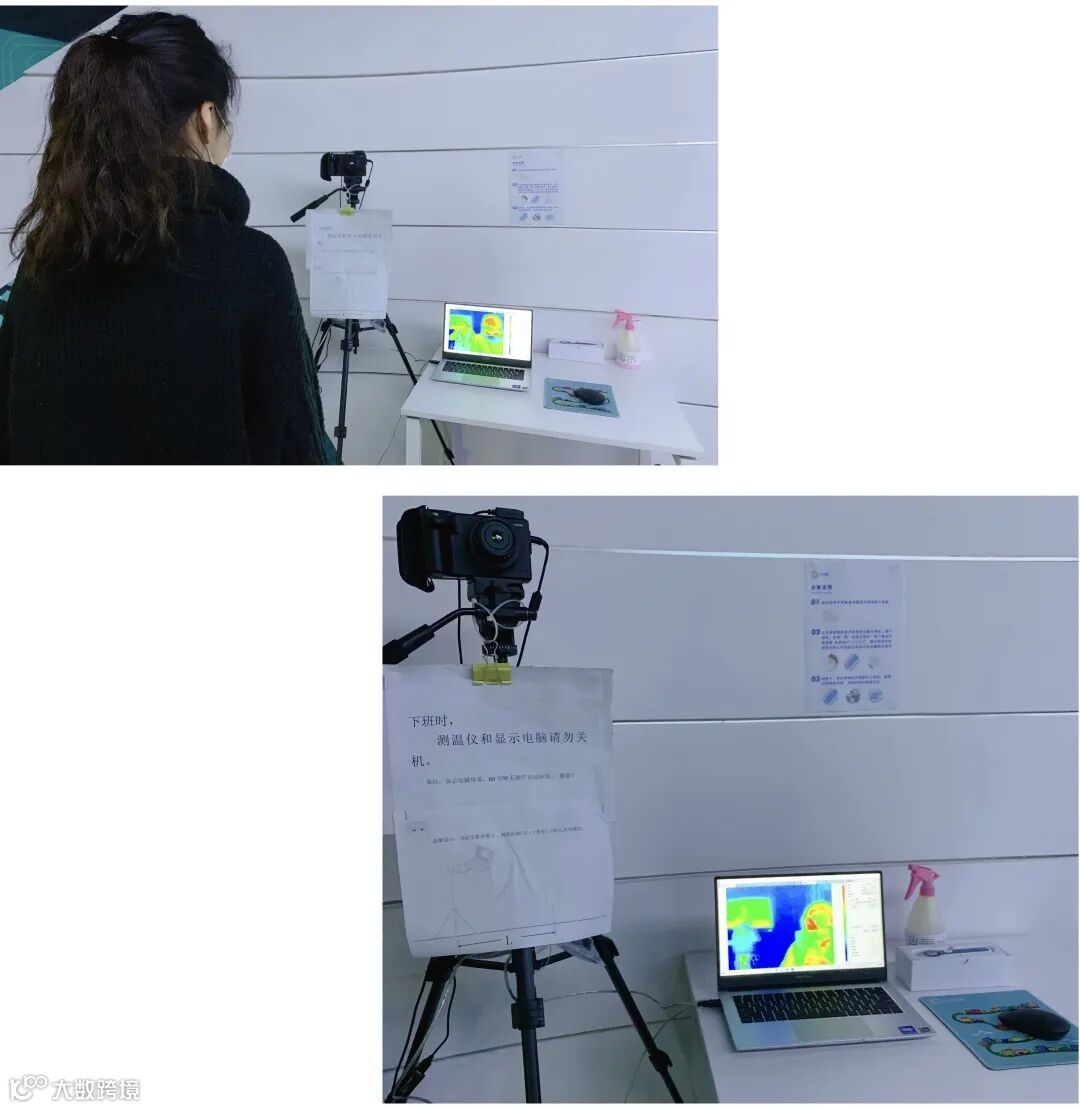 前台放置AI快速体温检测仪,全程无接触式为来岗员工测量体温,体温监测数据实时上传后台系统,以便做好记录