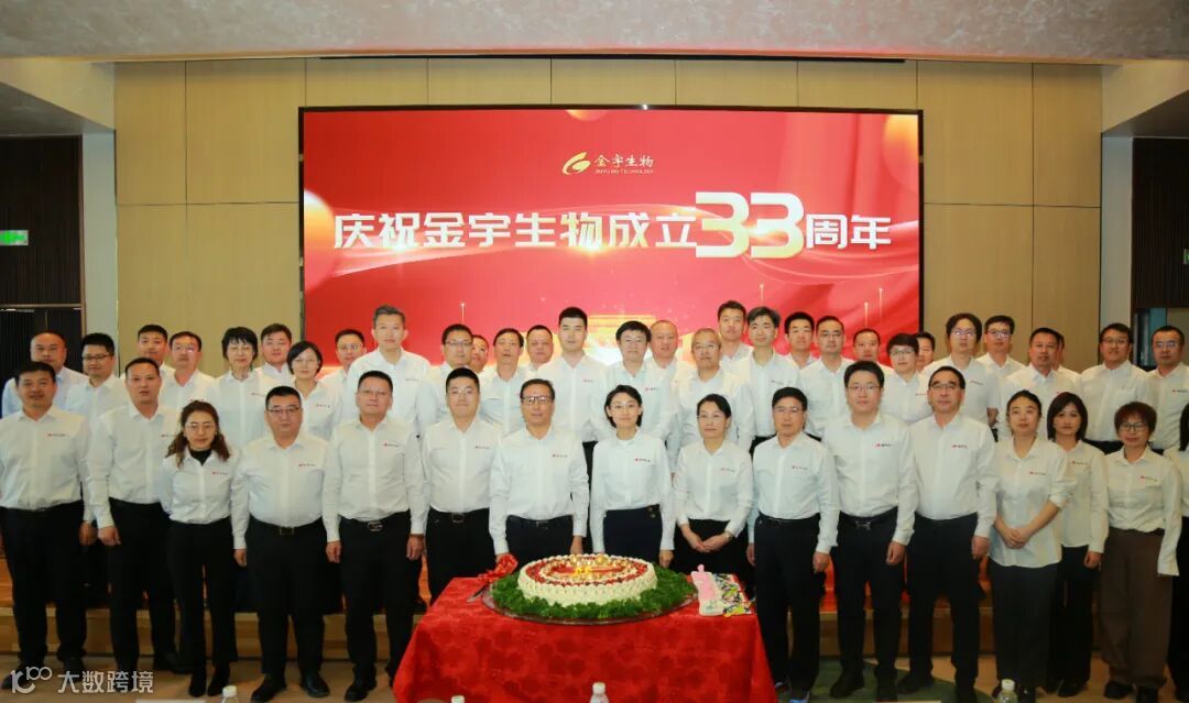 会议最后,迎来了温馨而庄重的庆典时刻。今年是金宇生物成立三十三周年,三十三年是一部敢为人先的创业史,更是一段披荆斩棘的奋斗路。在全体与会人员的共同见证下,张翀宇董事长、张竞总裁携手高管团队登上舞台,共同切开象征凝聚着汗水、智慧与梦想的庆典蛋糕,为金宇生物三十三载华诞留下了璀璨瞬间,全场掌声雷动,共同祝福金宇蒸蒸日上。