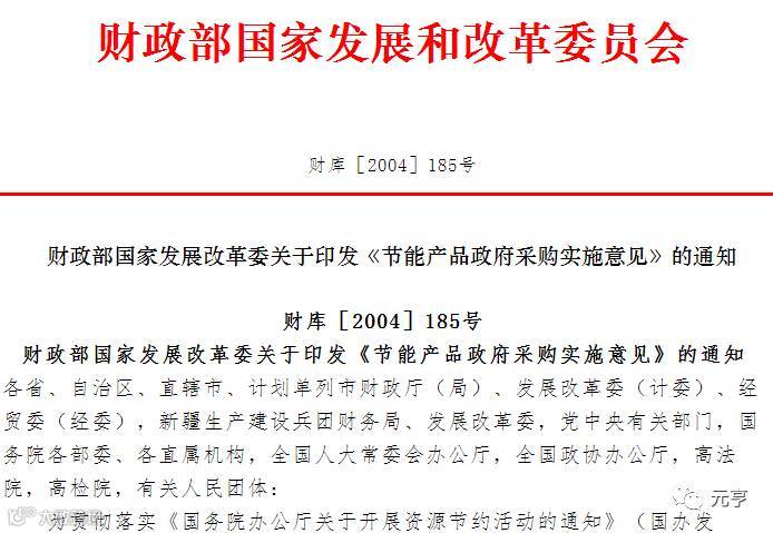 为贯彻落实《国务院办公厅关于开展资源节约活动的通知》(国办发[2004]30号),发挥政府机构节能的表率作用,根据《中华人民共和国节约能源法》和《中华人民共和国政府采购法》,财政部、国家发展和改革委员会制定了《节能产品政府采购实施意见》明确了节能产品政府采购清单是实施政府优先采购和强制采购的重要依据, 采购单位使用财政性资金进行政府采购活动时,在技术、服务等指标满足采购需求的前提下,要优先采购节能产品,对部分节能效果、性能等达到要求的产品,实行强制采购,以促进节约能源,保护环境,降低政府机构能源费用开支 。