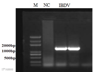 病毒分离 取发病法氏囊处理后接种10日龄SPF鸡胚,死亡鸡胚可见鸡胚全身发红出血绒尿膜增厚。使用针对IBDV-VP2的特异性引物可扩增出VP2特异性条带。 |