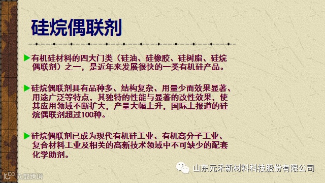 导读:山东元禾新材料科技股份有限公司,始终致力于含硫硅烷偶联剂产品的研发、生产和销售,主要生产含硫硅烷硅69、硅7
