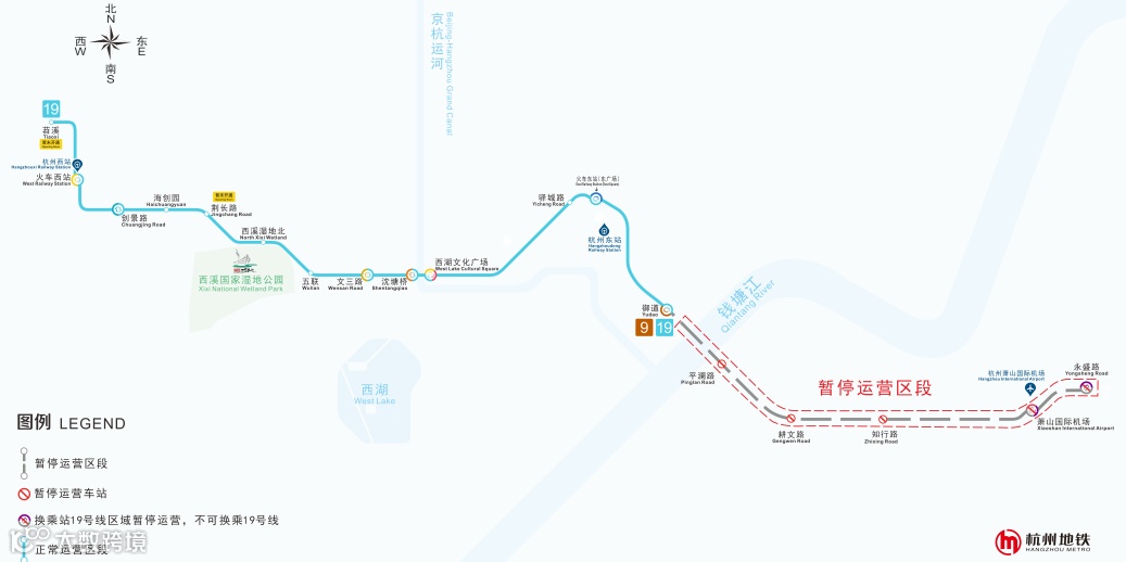 (19号线暂停运营区段示意图)