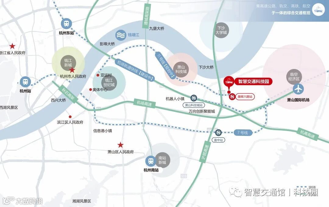智慧交通科技园,落子杭州萧山,着眼长三角、浙江大湾区、杭州拥江发展三大核心区位,区位优势得天独厚。