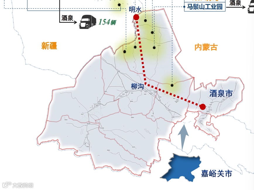 甘肃省酒泉市,地处河西走廊西端的阿尔金山、祁连山与马鬃山之间,东去内蒙、西达新疆、北抵蒙古国、南下甘肃玉门等地,而这条无人驾驶电动货卡专用公路,则串联起了沿线矿产资源、工业园区、物流园区的交通运输需求。