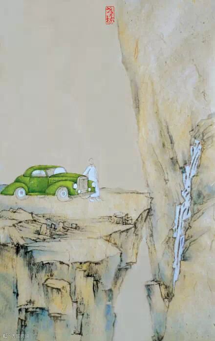 在老先生们的启发下,老树慢慢明白了如何去寻找那个契合点。在那些意趣相投的古人身上,生死、时代都没那么重要了。“代入地理解他人的过程中,也就更理解了自己。这形成一个参照,像灵魂附体一样,他带给我的震动比看史料要直接得多。”老树把这套方法用于教学生,也用于画画。他的作品中李白、竹林七贤等人物自由地出入对话,时空交错,天马行空。画中的人物则一律是长衫人——无我无他,在老树的眼中,这些古人与自己,或者与画中人,都是一体的。插科打诨也罢,风轻云淡也好,他要借此传递的是他自己在现代生活里体会到的那些焦虑、紧张以及如何试图消解,那些努力寻找的一点轻松的快意和无伤大雅的自得其乐。