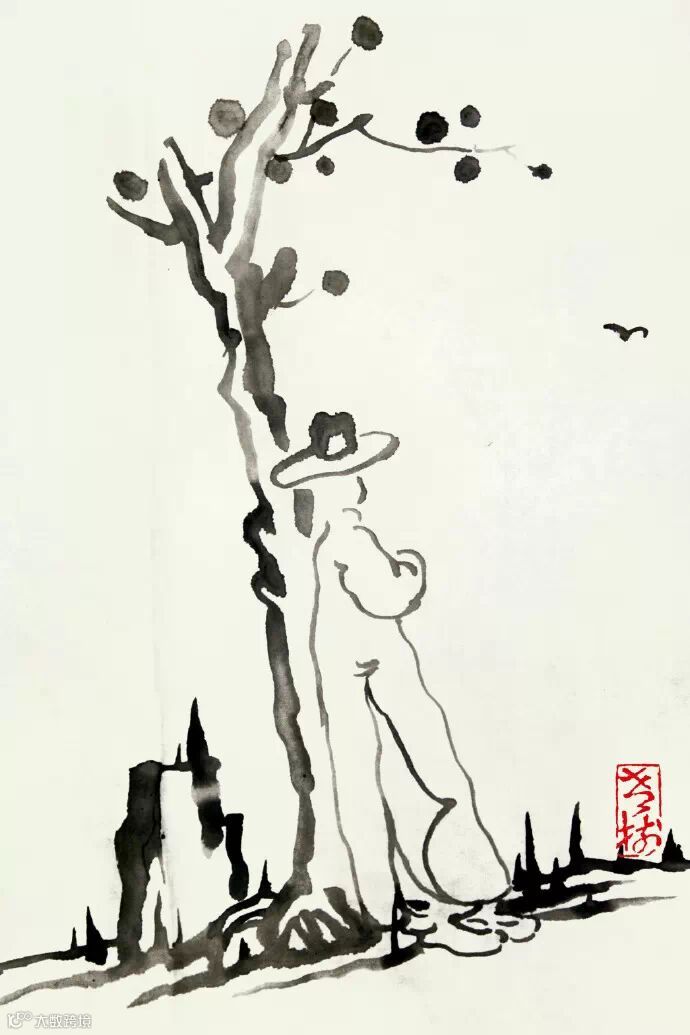 几个小时后打开电脑,大量转发与点赞的信息朝他涌来。自从2011年开始坚持在名叫“老树画画”的微博上贴出自己的画作并配诗以来,刘树勇能感觉到来自互联网虚拟空间中无数陌生人在观看时发生情感契合的瞬间,他的绰号“老树”也几乎取代了真名。许多人并不知道他在现实中的身份,他们会在网上问他:老树,你画的那人是你自己吗?