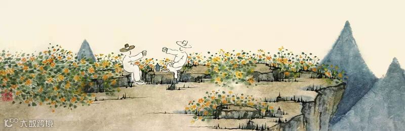 老树有着山东汉子粗犷的线条和身型,面目并不是想象中的清癯,但是生动鲜明,话音爽朗利落。他指着自己的光头说:“其实就这一点像画里人,不过我近来的画里给他加了顶帽子,哈哈!”一喝上最喜欢的二锅头,老树的举止就开始有些像画里人了,逸兴遄飞,嘴里念叨几句喜欢的诗词:“陌上柔桑破嫩芽,东邻蚕种已生些。平冈细草鸣黄犊,斜日寒林点暮鸦。山远近,路横斜,青旗沽酒有人家。城中桃李愁风雨,春在溪头荠菜花。”他就爱这样描写平常小景的诗词。“我就喜欢小山小水闲花野草,用笔磨磨蹭蹭,墨色氤氲变幻,画得很个人很享受的那种。”