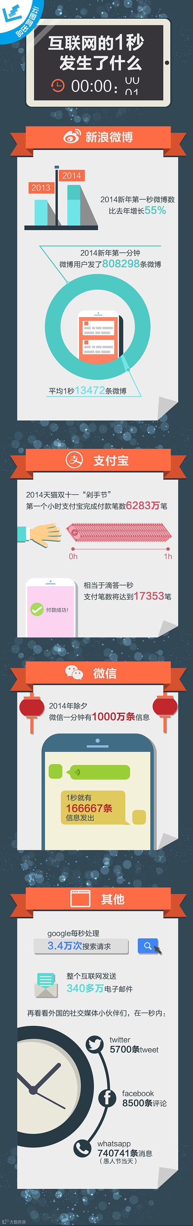 每一秒对于我们来说转瞬即逝,但在互联网上却留下了深深的印记:13472条微博,17353笔支付宝转账,16万6667条微信……互联网的一秒发生了什么,快来看看