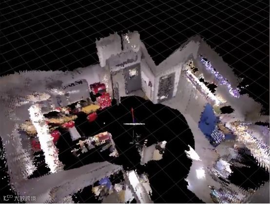 这其实就是三维场景重建的技术。机器人自己绘制三维地图,就是不断地对自己身边的环境进行三维重建。机器人刚进入一个新环境时,脑子中的地图是空的,睁开了第一眼,就有了第一个点云: