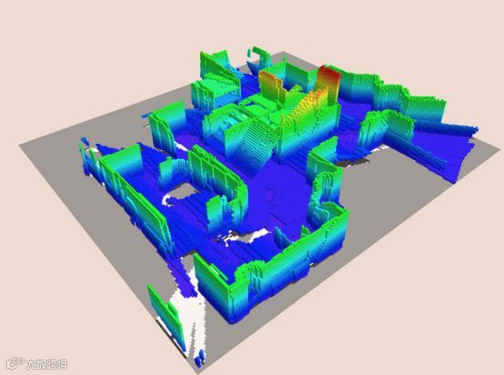 至此,机器人脑子里就构建出了面前空间的地图了。